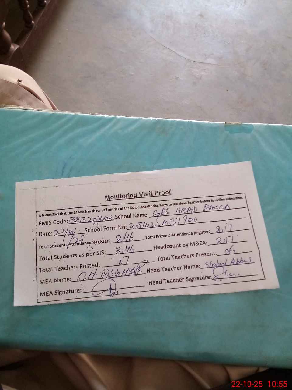 | EMIS Code: 38320202 | Name of School: GPS HEAD PACCA | |||