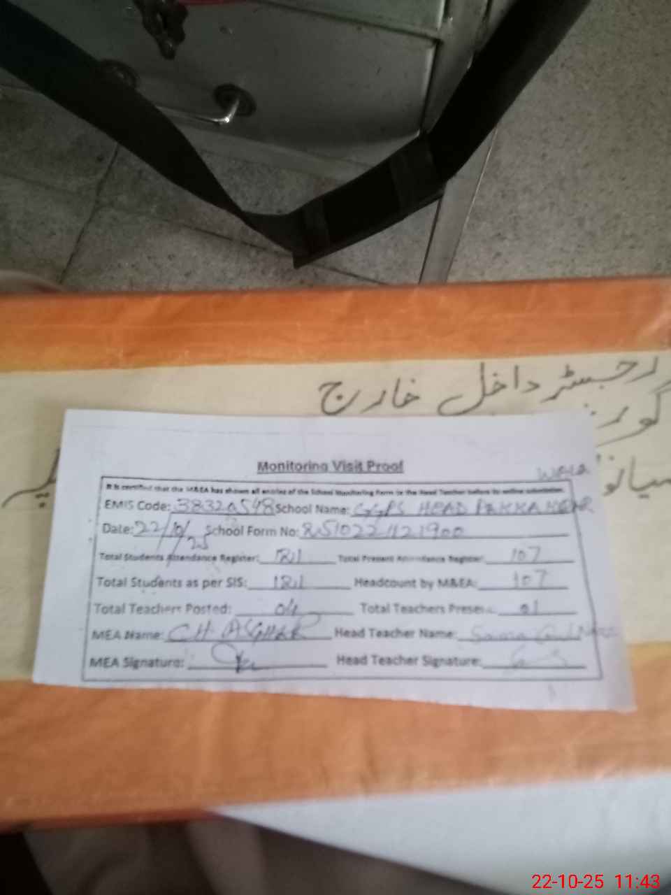 | EMIS Code: 38320548 | Name of School: GGPS HEAD PAKKA KIRAR WALA | |||