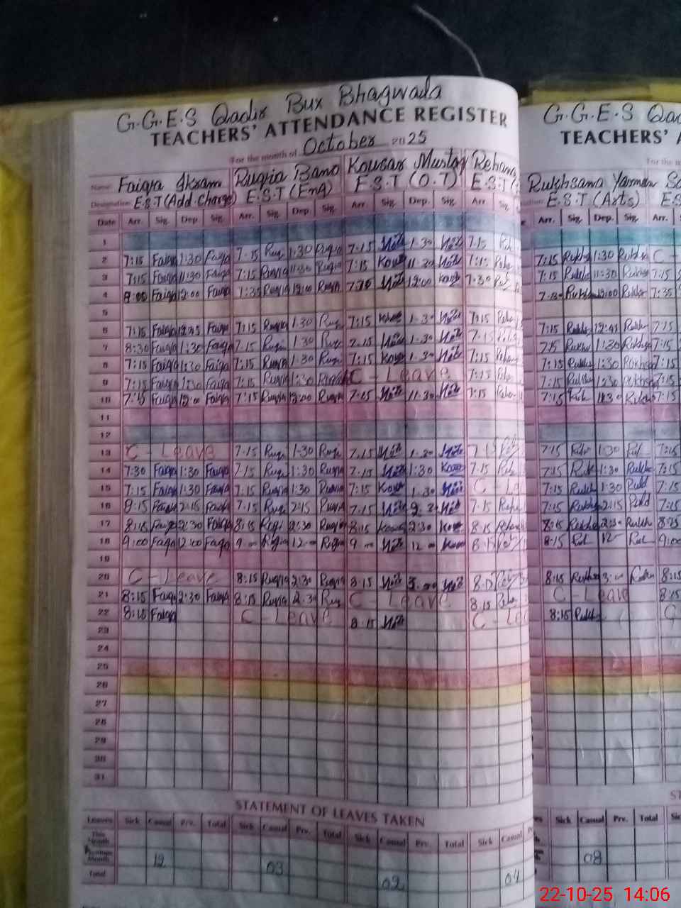 | Leave | Duty | Absent | Maternity | Medical | Ex- Pak |