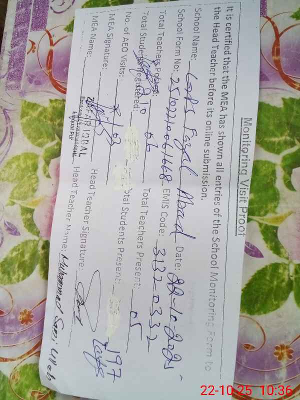 | EMIS Code: 31320332 | Name of School: GPS FAZAL ABAD | |||