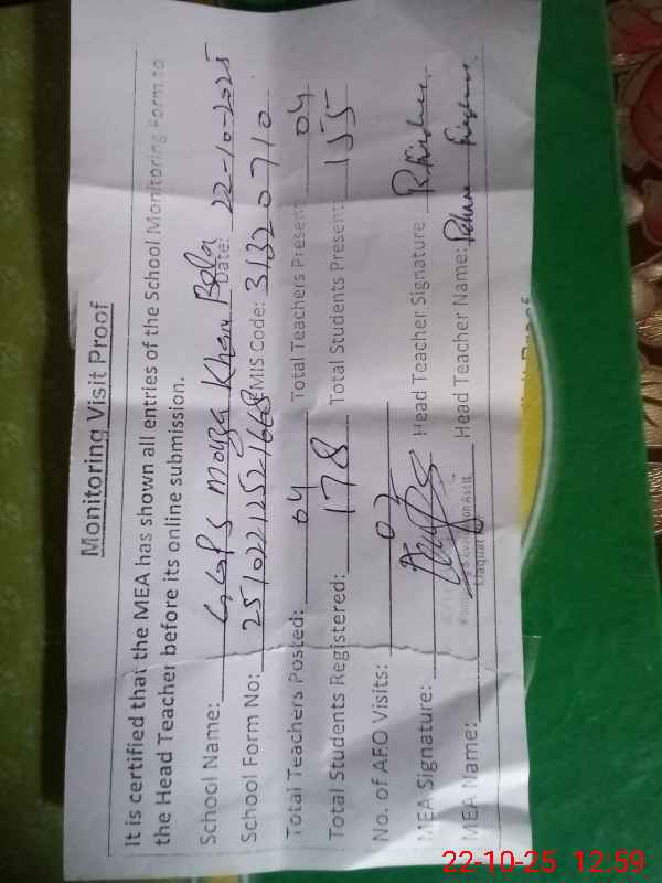 | EMIS Code: 31320710 | Name of School: GGPS MOUZA KHAN BELA | |||