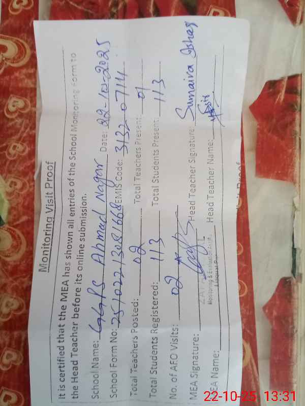 | EMIS Code: 31320714 | Name of School: GGPS AHMAD NAGAR | |||