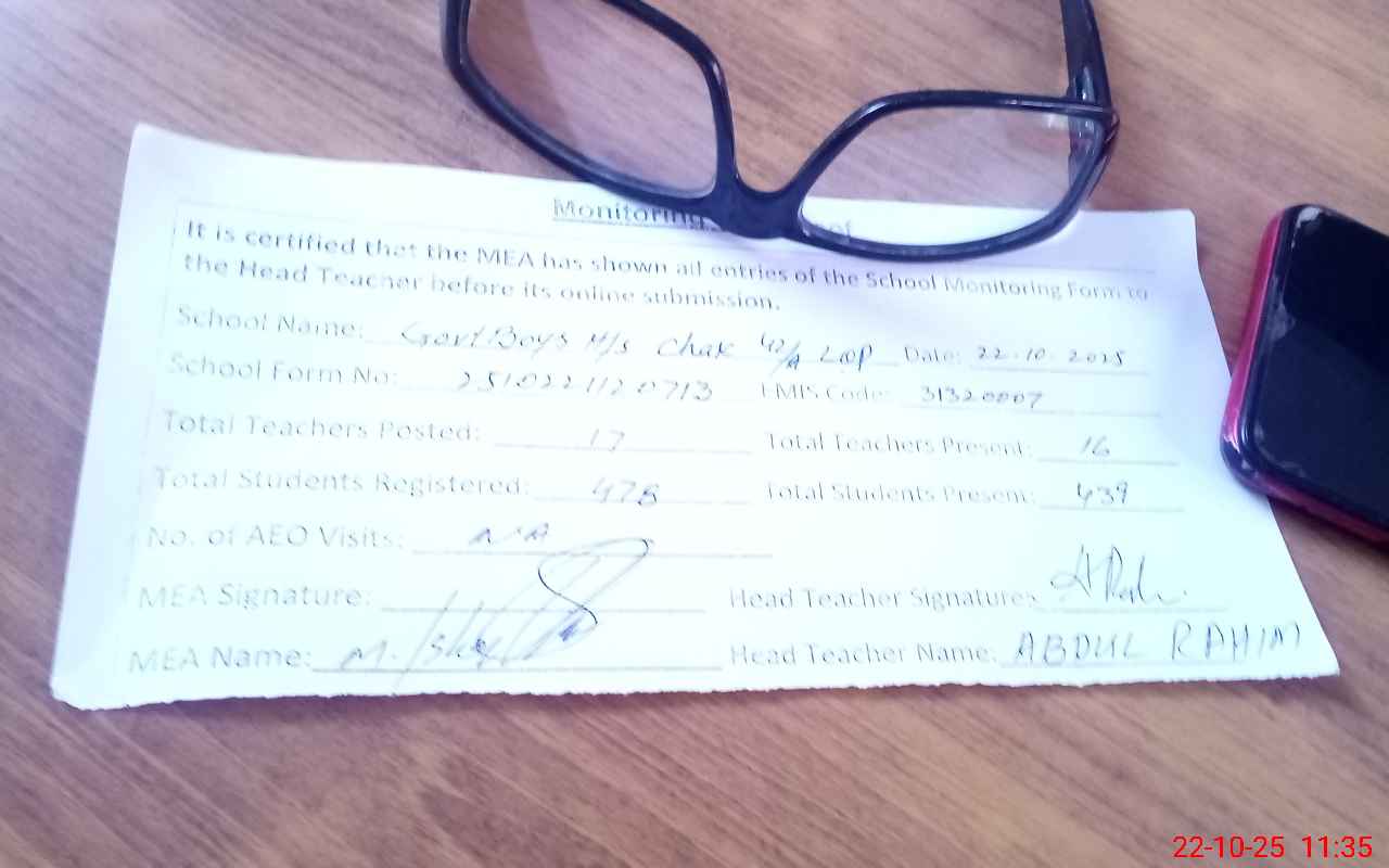 | Name: AS**** MA**** Designation: (School Headmaster's/Headmistress's) SST Phone/Cell Number: 03**** |