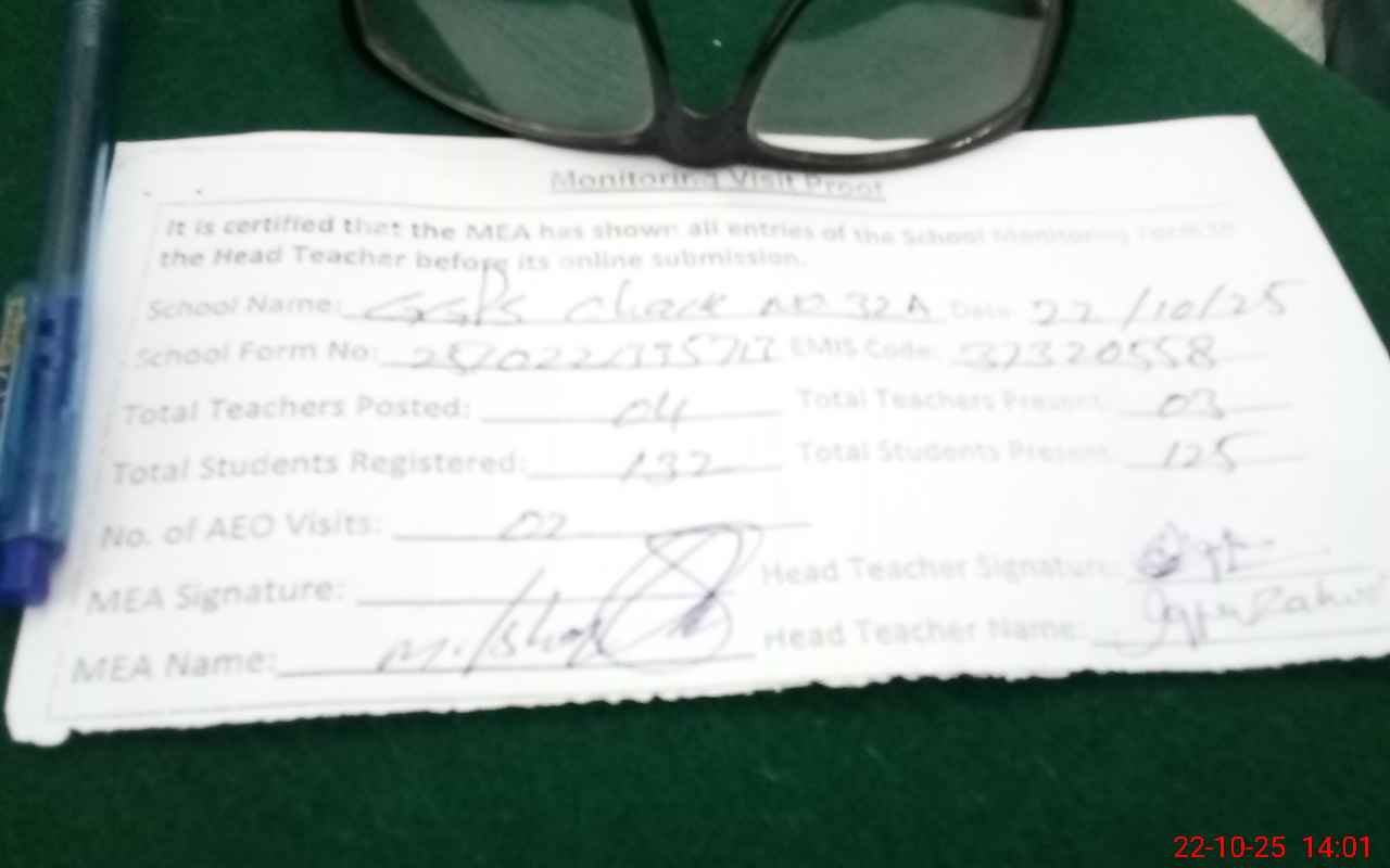 | EMIS Code: 31320558 | Name of School: GGPS CHAK 32/A | |||