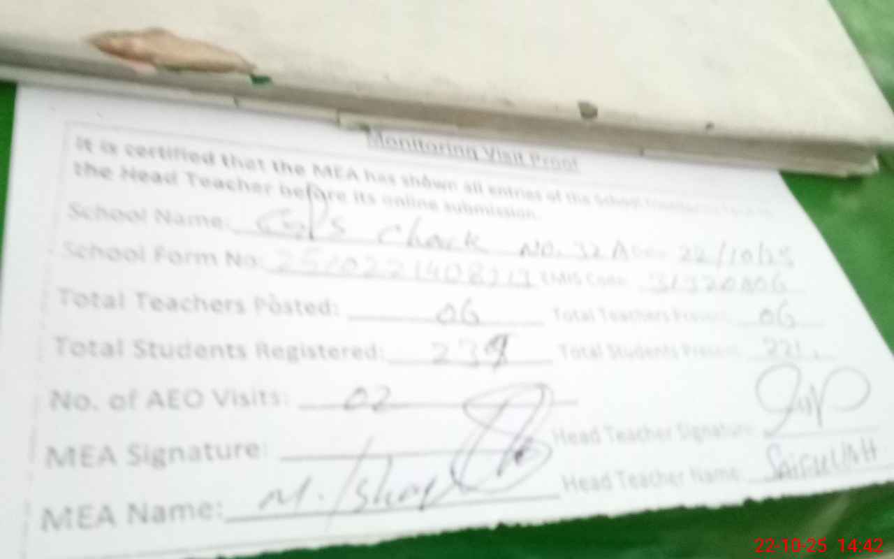 | EMIS Code: 31320806 | Name of School: GPS CHAK 32/A | |||