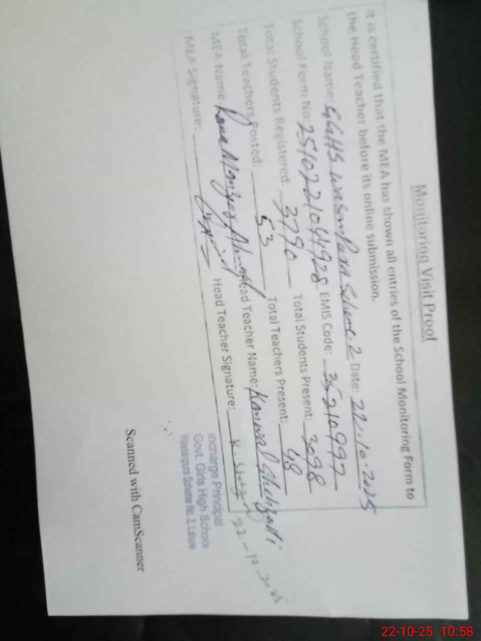 | EMIS Code: 35210997 | Name of School: GGHS WASAN PURA SCHEME NO. 2 | |||