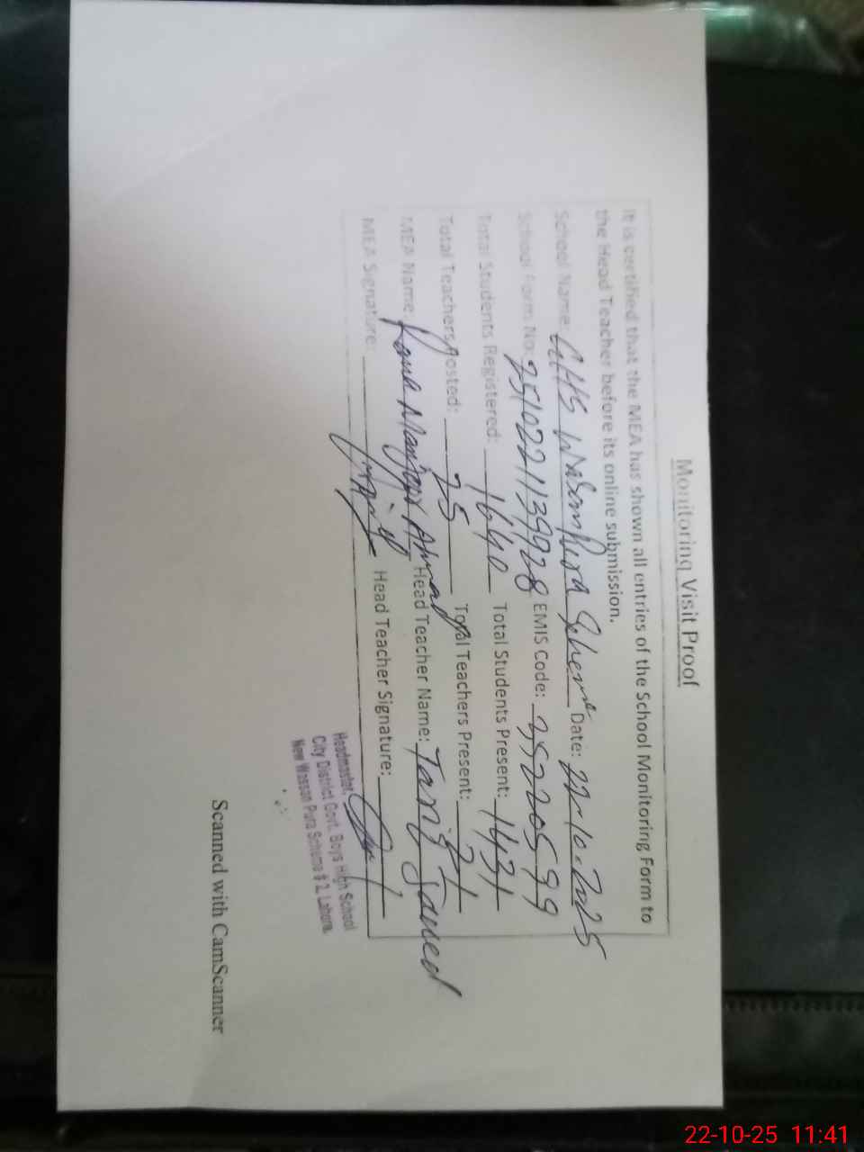 | Certified that this School was Inspected by the Undersigned MEA/DMO Today and the Information Stated Above is as Per Record. | |||||