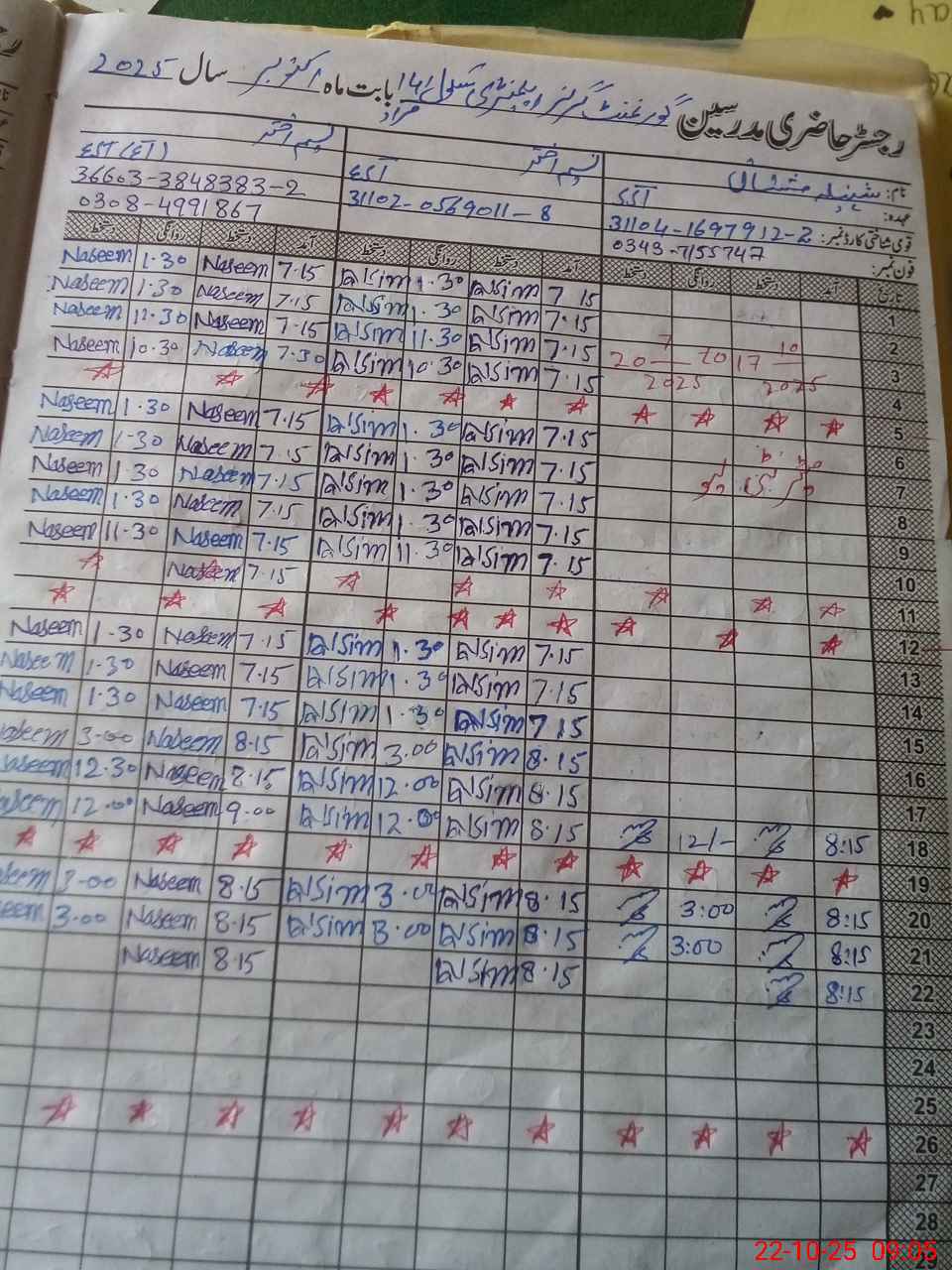 | 31**** | Su**** Ma**** | ESE | Contract | 0 | 0 | 0 | 0 | 0 | 0 | 0 | 0 | 0 | Absent (Un-Authorized) |