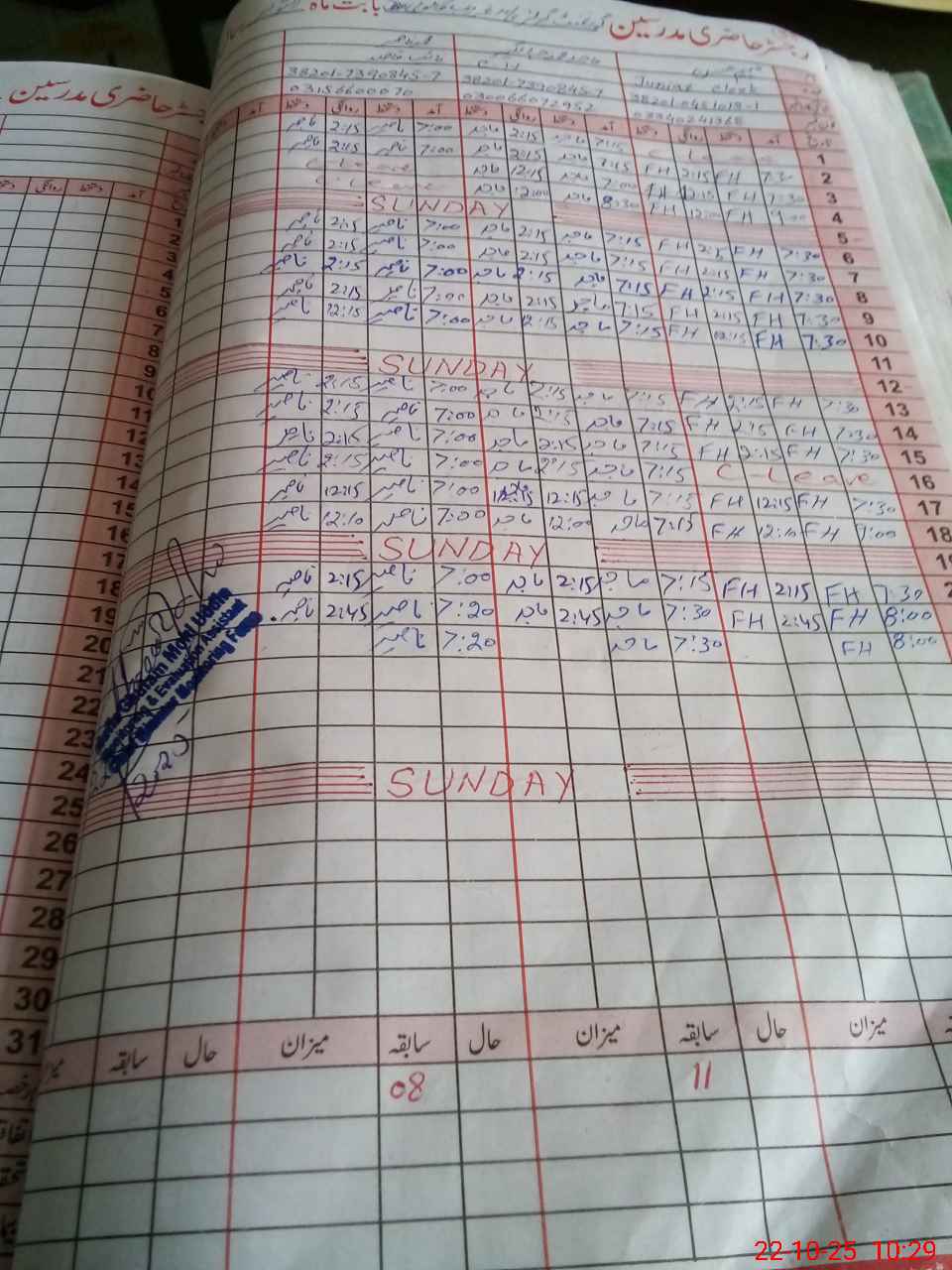 | CNIC | Full Name | Designation | R/C | Absence During Last Calender Month |
