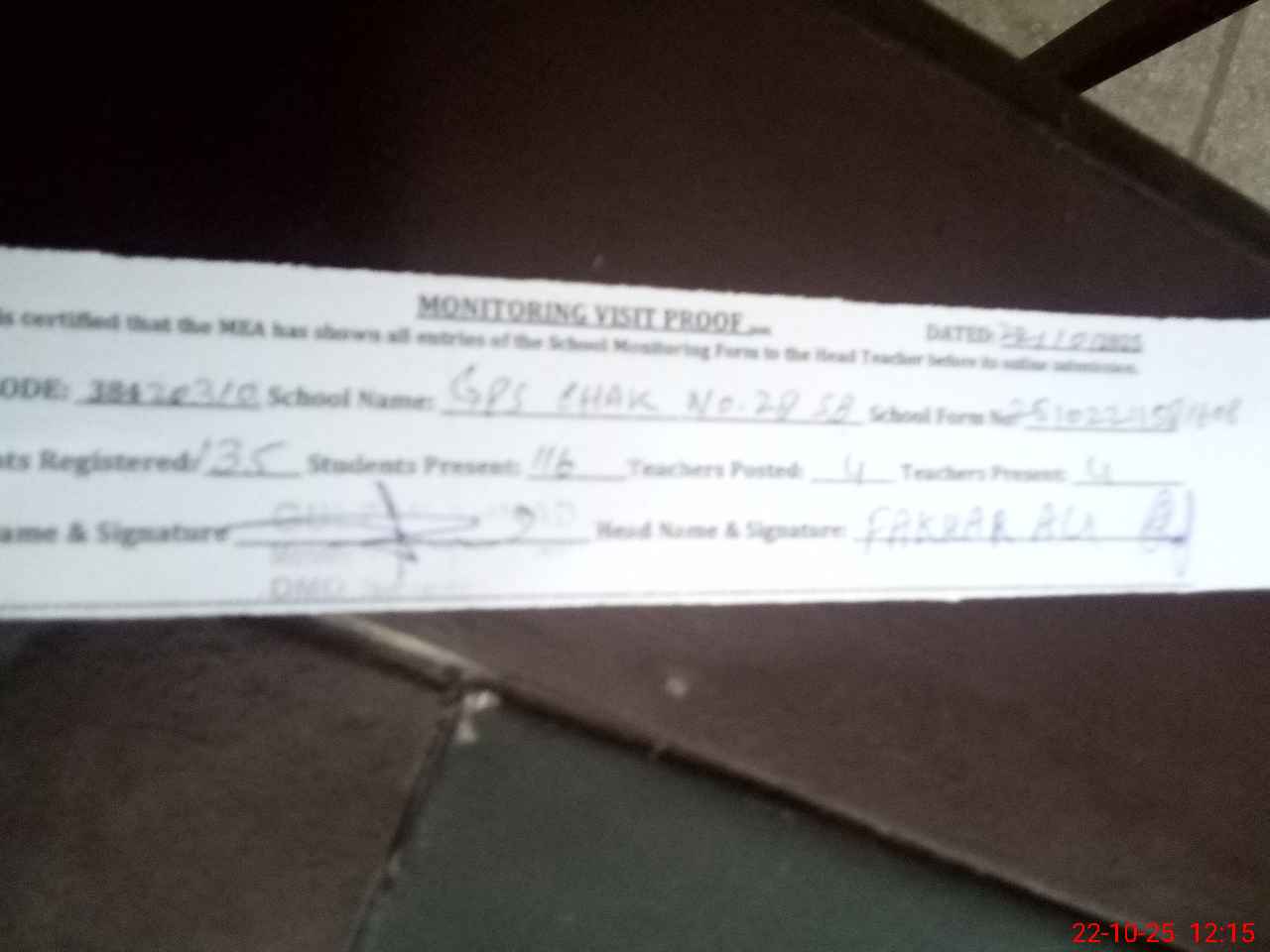 | EMIS Code: 38420310 | Name of School: GPS CHAK NO 28 SB | |||