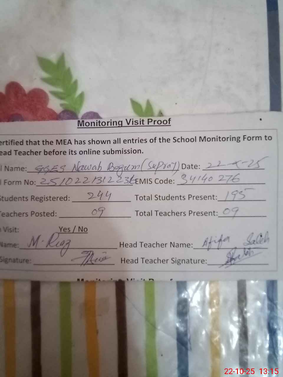 | EMIS Code: 34140276 | Name of School: GGES NAWAB BEGUM (SUPRAY) | |||