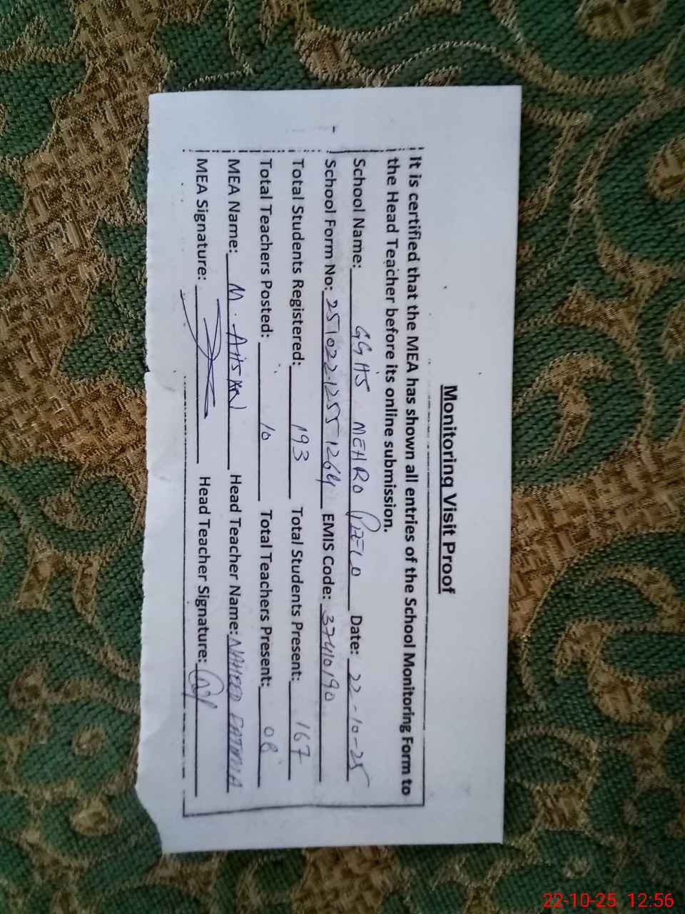 | EMIS Code: 37410190 | Name of School: GGHS MEHRO PILO | |||