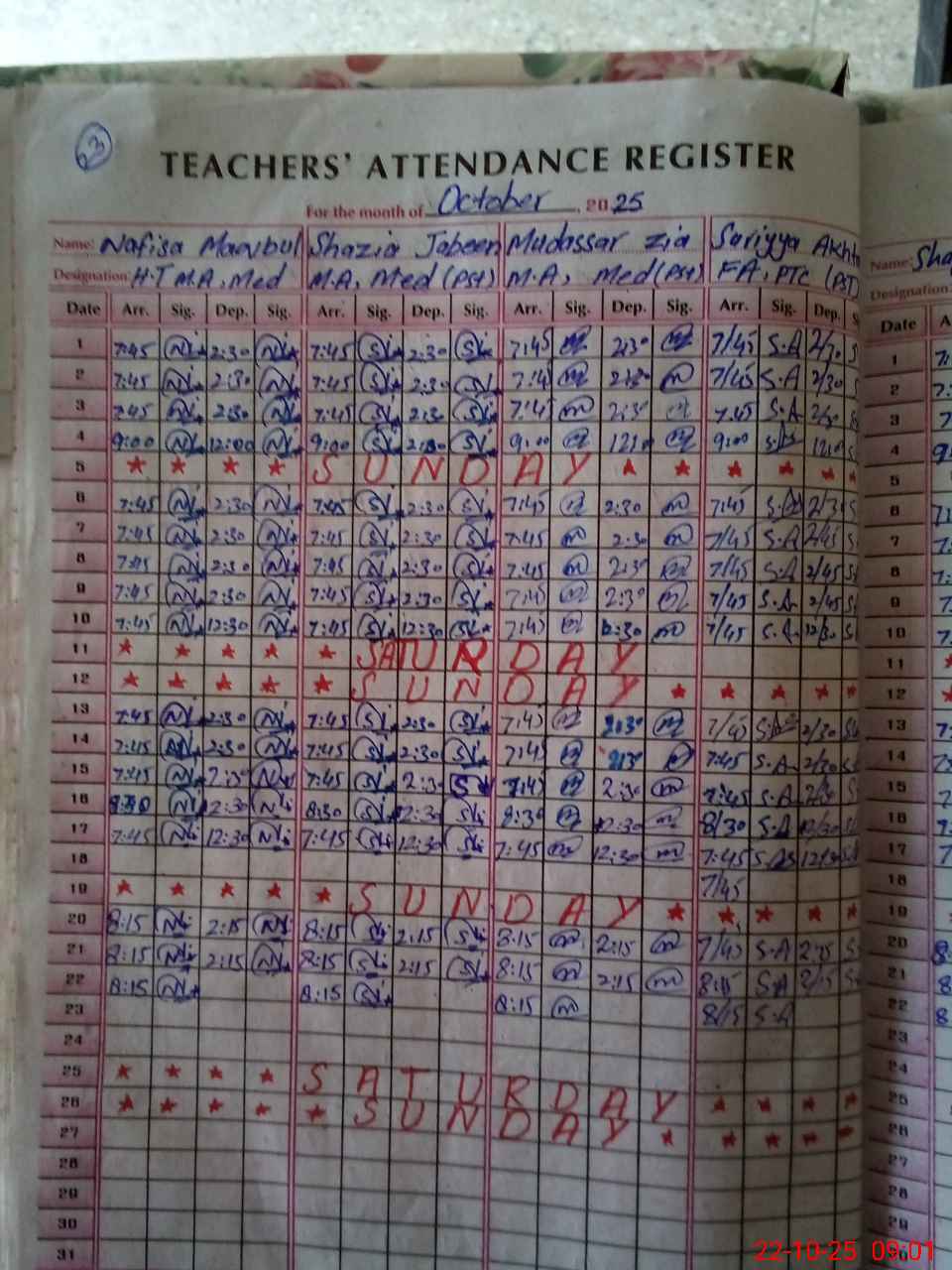 | Monitoring Date: 22-10-2025 | Start Time: 22-10-2025 09:00 AM | End Time: 22-10-2025 09:22 AM | Name of MEA: AT**** MU**** | |