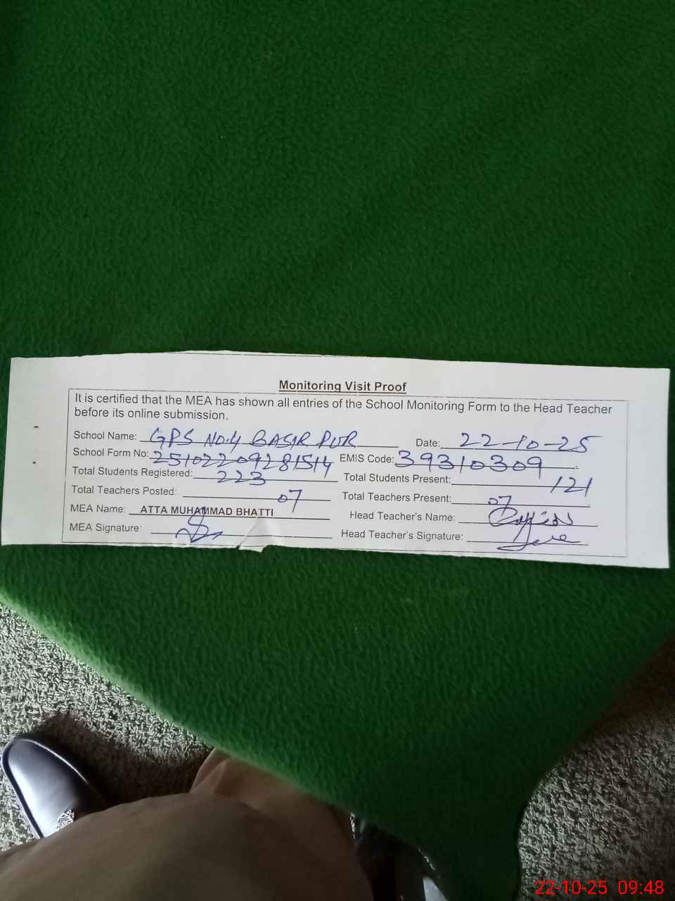 | EMIS Code: 39310309 | Name of School: GPS NO. 4 BASIR PUR | |||