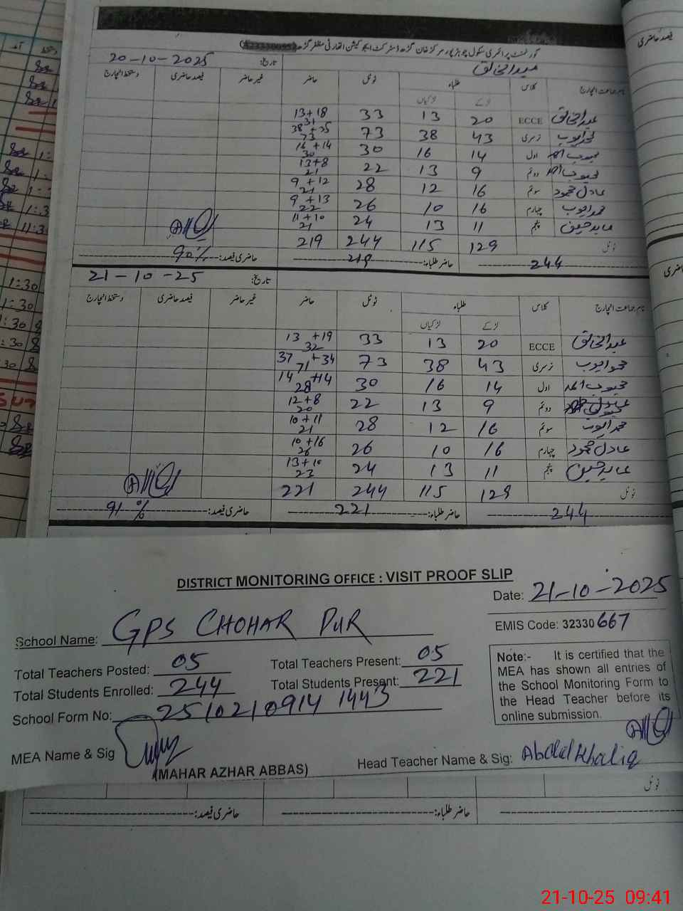 | EMIS Code: 32330667 | Name of School: GPS CHOHAR PUR | |||