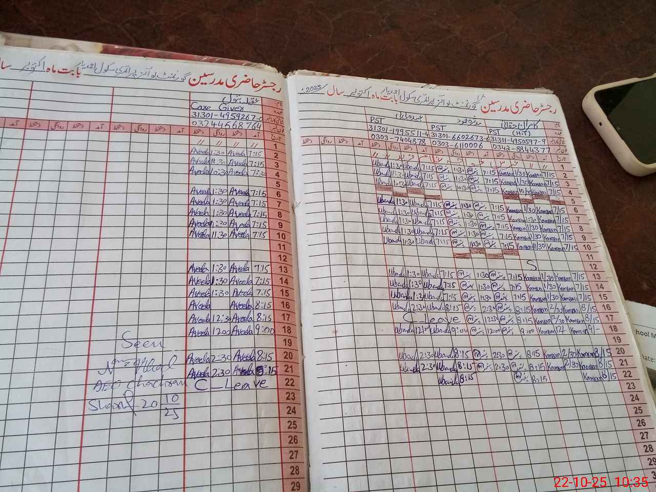 | CNIC | Full Name | Designation | R/C | Absence During Last Calender Month |