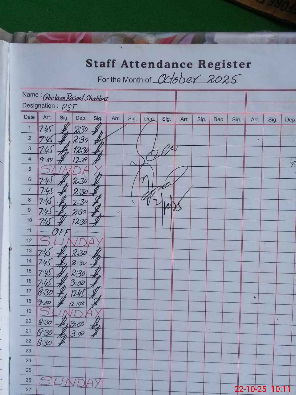 | Name: GH**** RA**** SH**** Designation: (School Headmaster's/Headmistress's) PST Phone/Cell Number: 03**** |