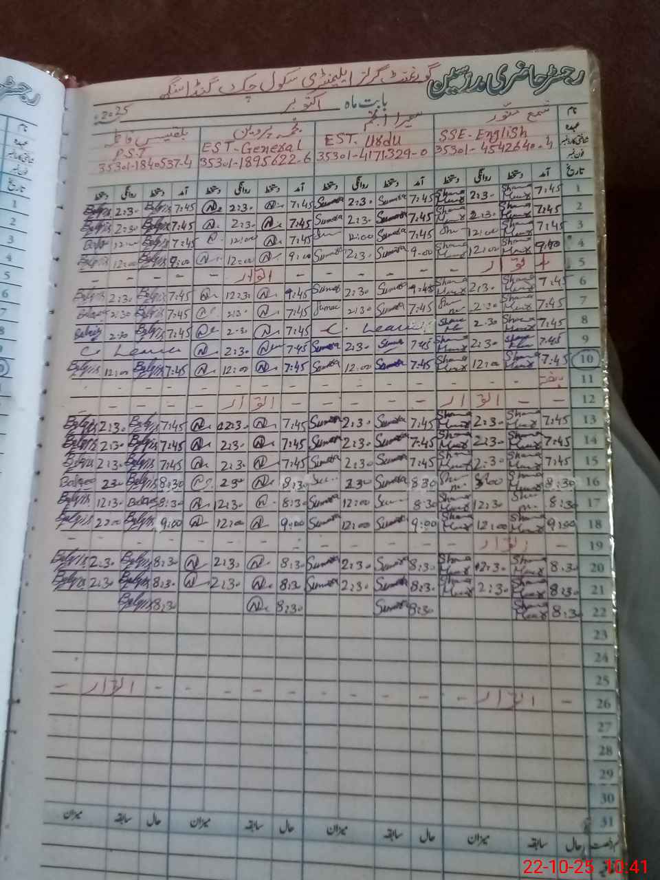 | Name: SH**** MU**** Designation: (School Headmaster's/Headmistress's) SSE ENG Phone/Cell Number: 03**** |