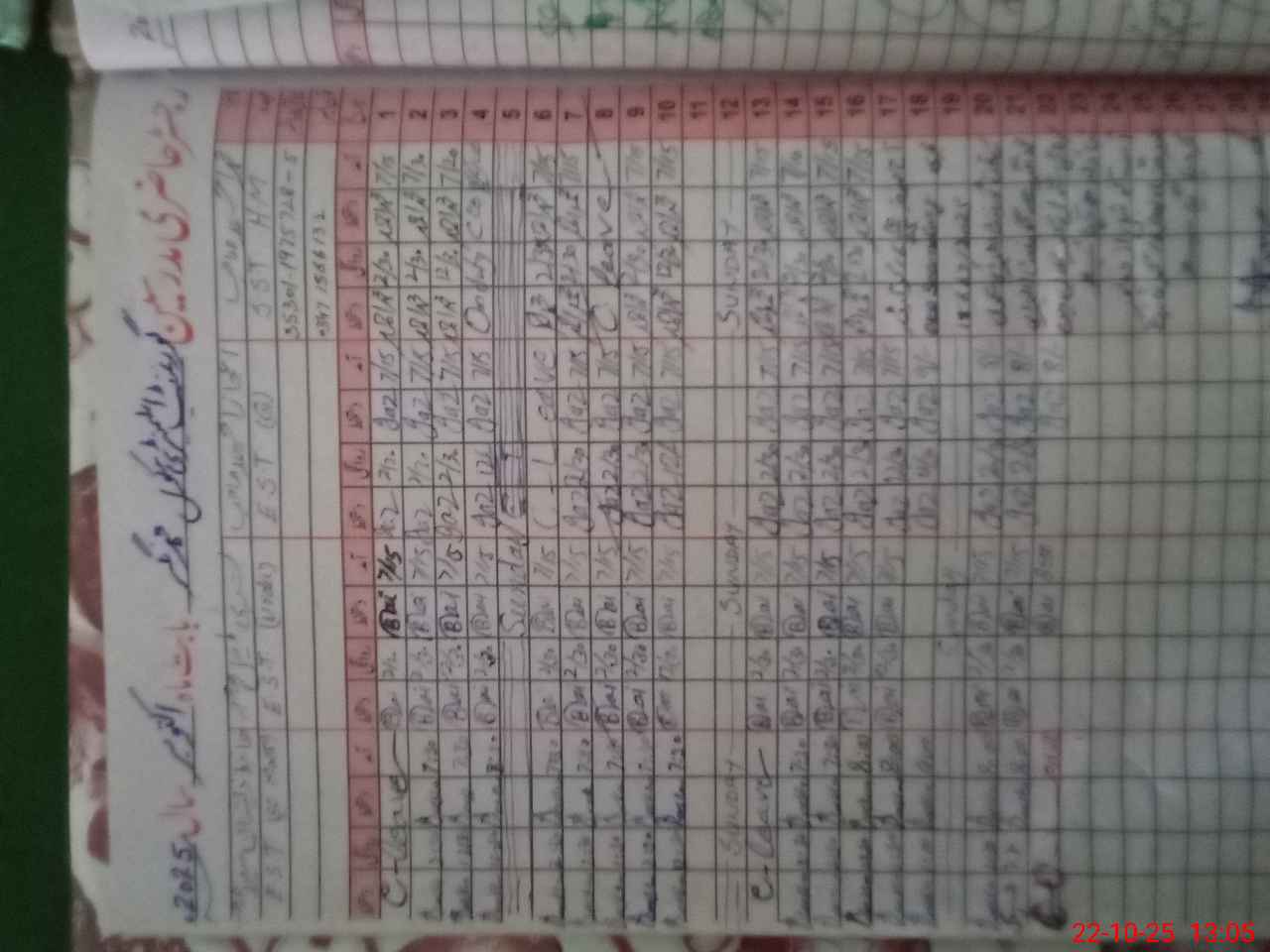 | CNIC | Full Name | Designation | R/C | Absence During Last Calender Month |