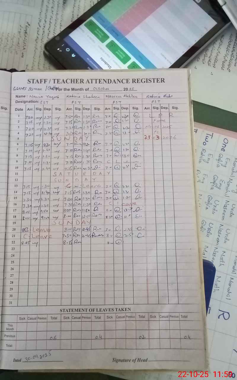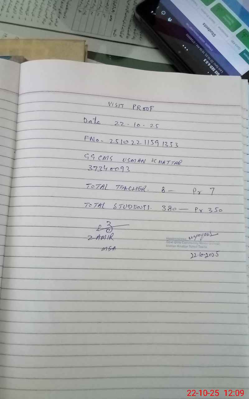 | EMIS Code: 37340093 | Name of School: GGCMS USMAN KHATTAR | |||