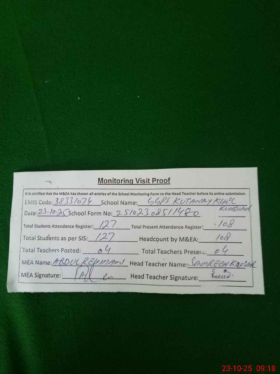 | EMIS Code: 38331074 | Name of School: GGPS KUTANAY KHEL KUNDIAN | |||