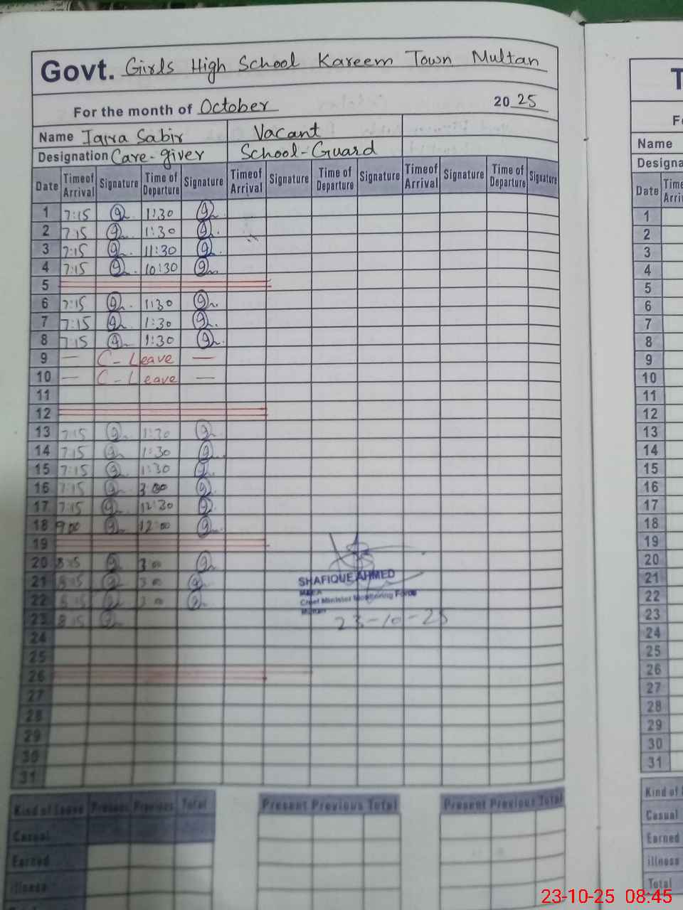 | 36**** | Sh**** Ba**** | SST | Regular | 0 | 0 | 0 | 0 | 0 | 0 | 0 | 0 | 0 | Maternity |