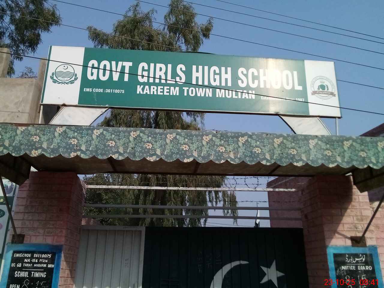 | EMIS Code: 36110075 | Name of School: GGHS KARIM TOWN NEAR CHOWK KUMHARAN WALA MULTAN | |||