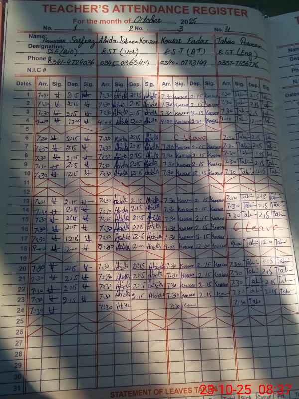 | Name: HU**** SA**** Designation: (School Headmaster's/Headmistress's) SSE Phone/Cell Number: 03**** |