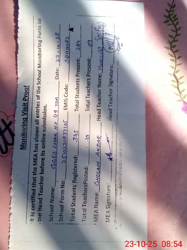 | EMIS Code: 38110082 | Name of School: GGES CHAK NO.49/TDA | |||