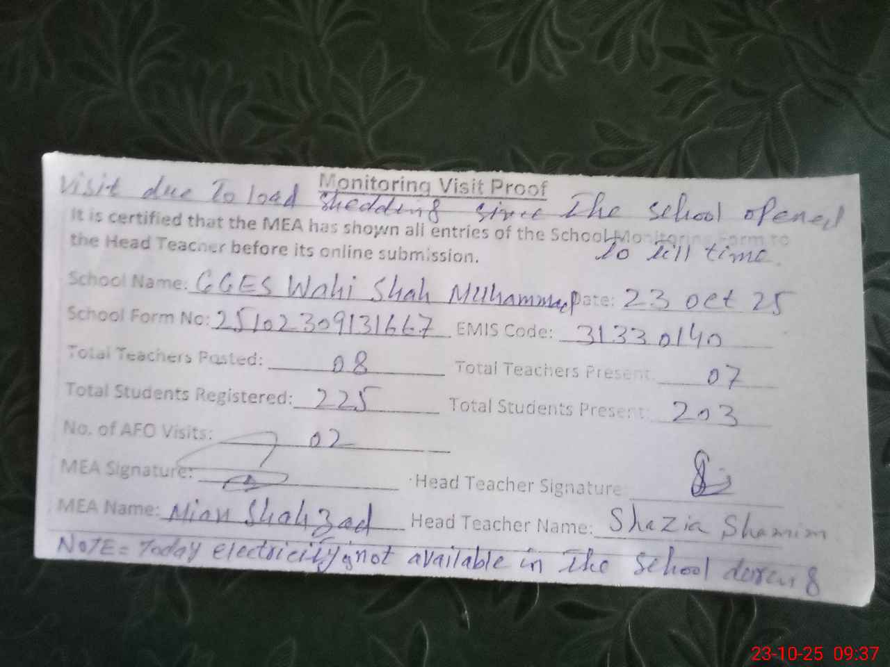 | EMIS Code: 31330140 | Name of School: GGES WAHI SHAH MUHAMMAD | |||