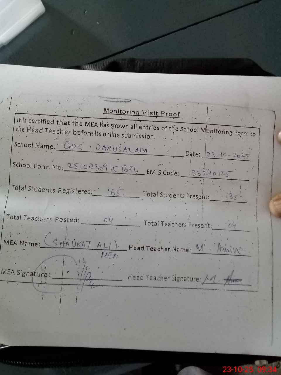 | EMIS Code: 33240125 | Name of School: GPS DAR US SALAM | |||
