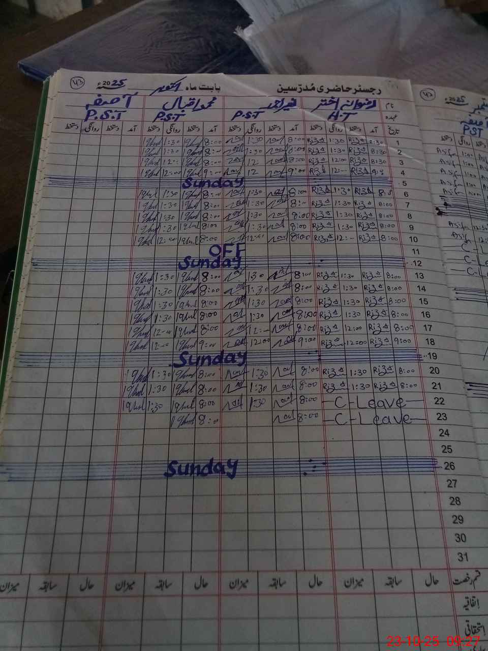 | CNIC | Full Name | Designation | R/C | Absence During Last Calender Month |