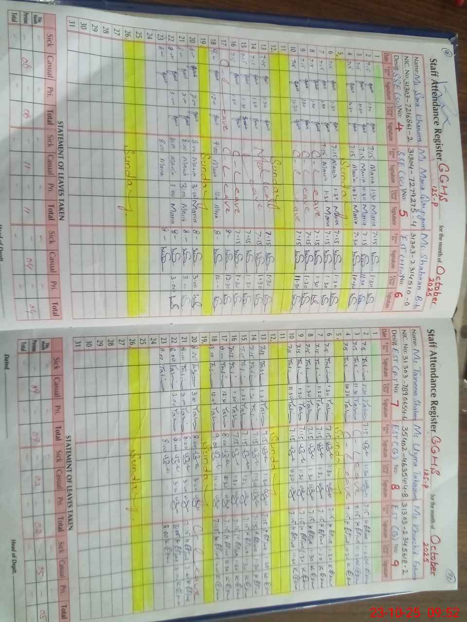 | CNIC | Full Name | Designation | R/C | Absence During Last Calender Month |