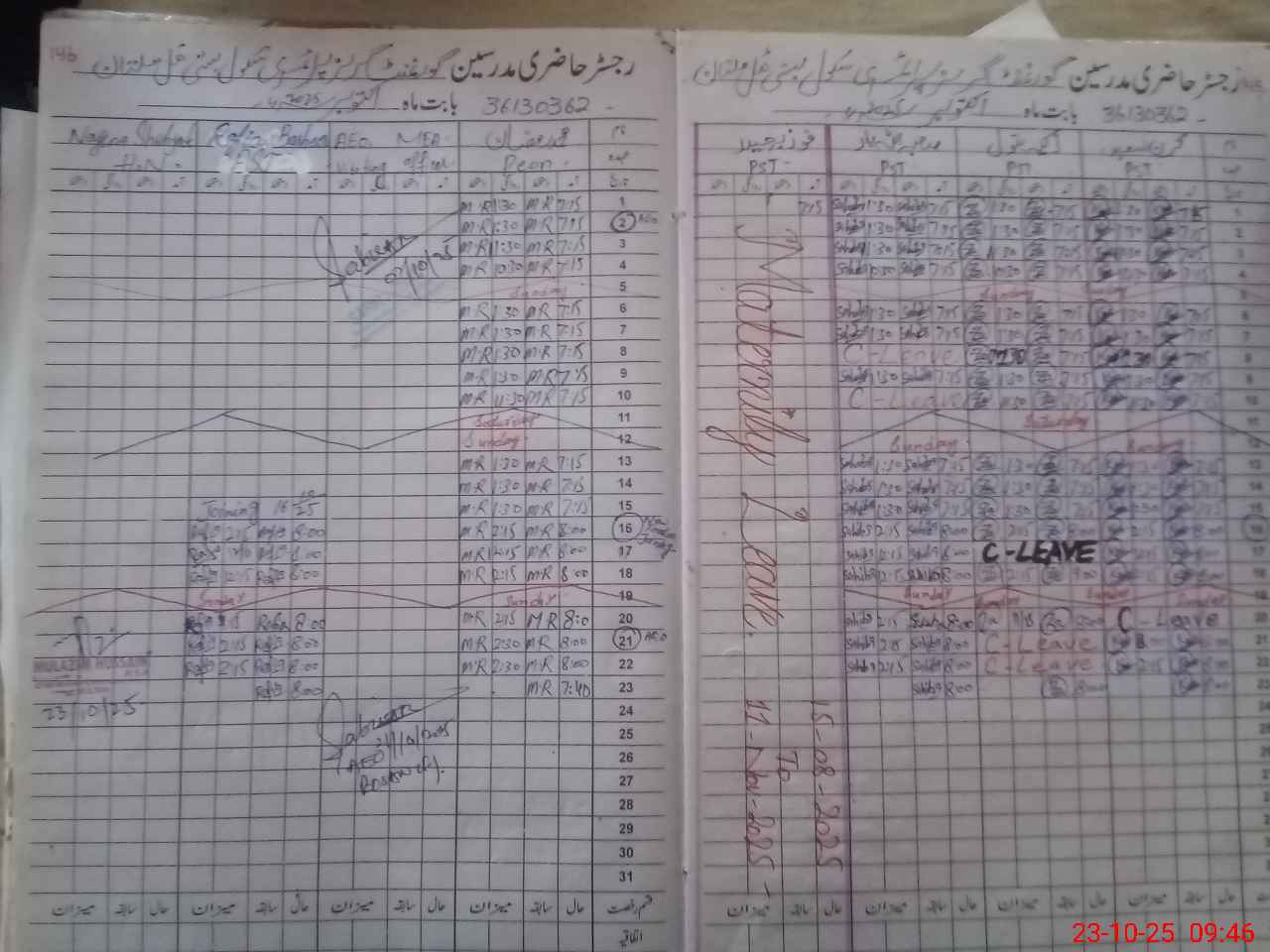 | CNIC | Full Name | Designation | R/C | Absence During Last Calender Month |