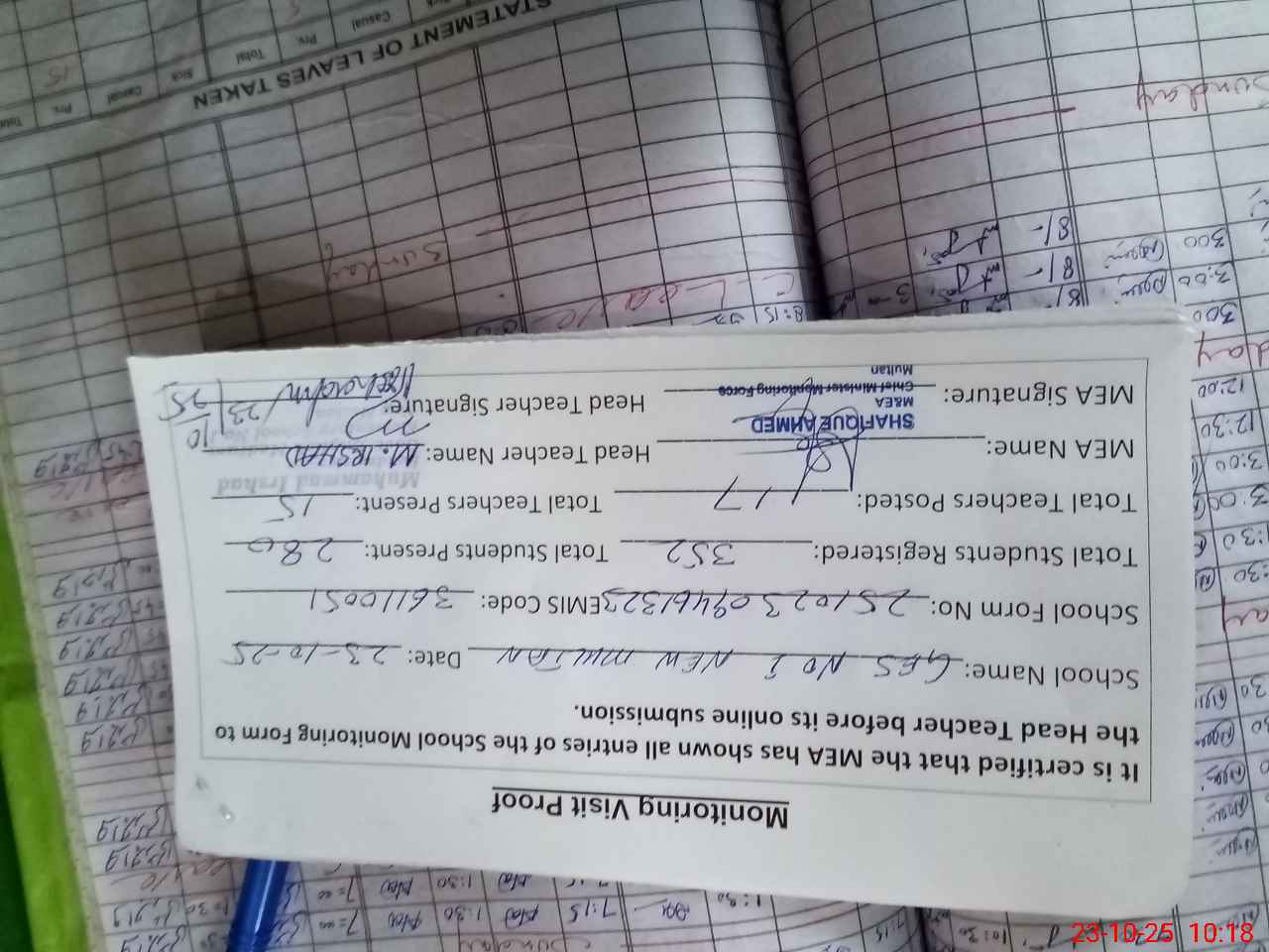 | Monitoring Date: 23-10-2025 | Start Time: 23-10-2025 09:46 AM | End Time: 23-10-2025 10:18 AM | Name of MEA: SH**** AH**** | |