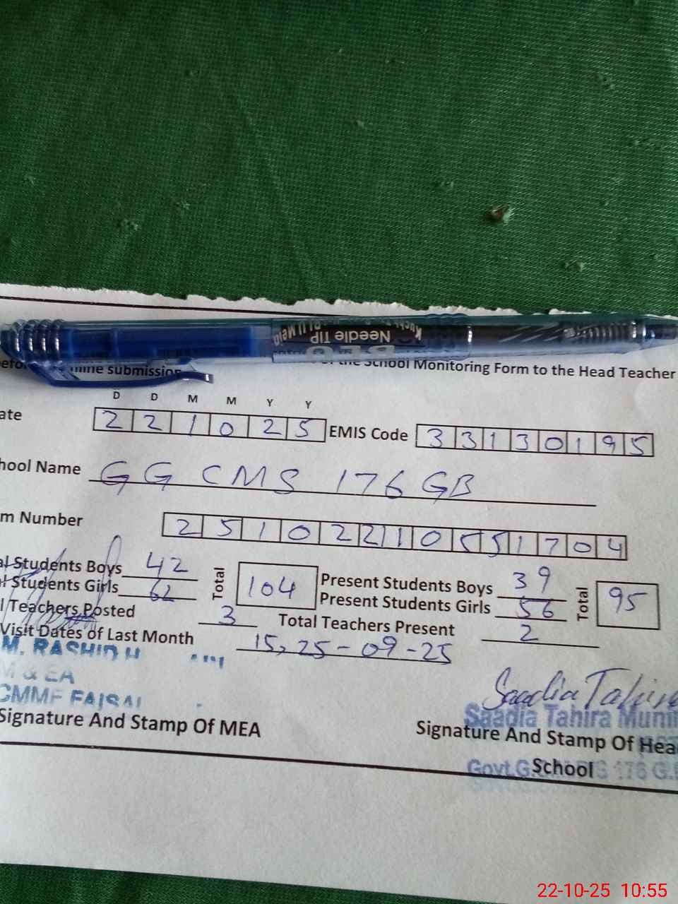 | EMIS Code: 33130195 | Name of School: GGCMS CHAK 176 GB SAMUNDRI | |||