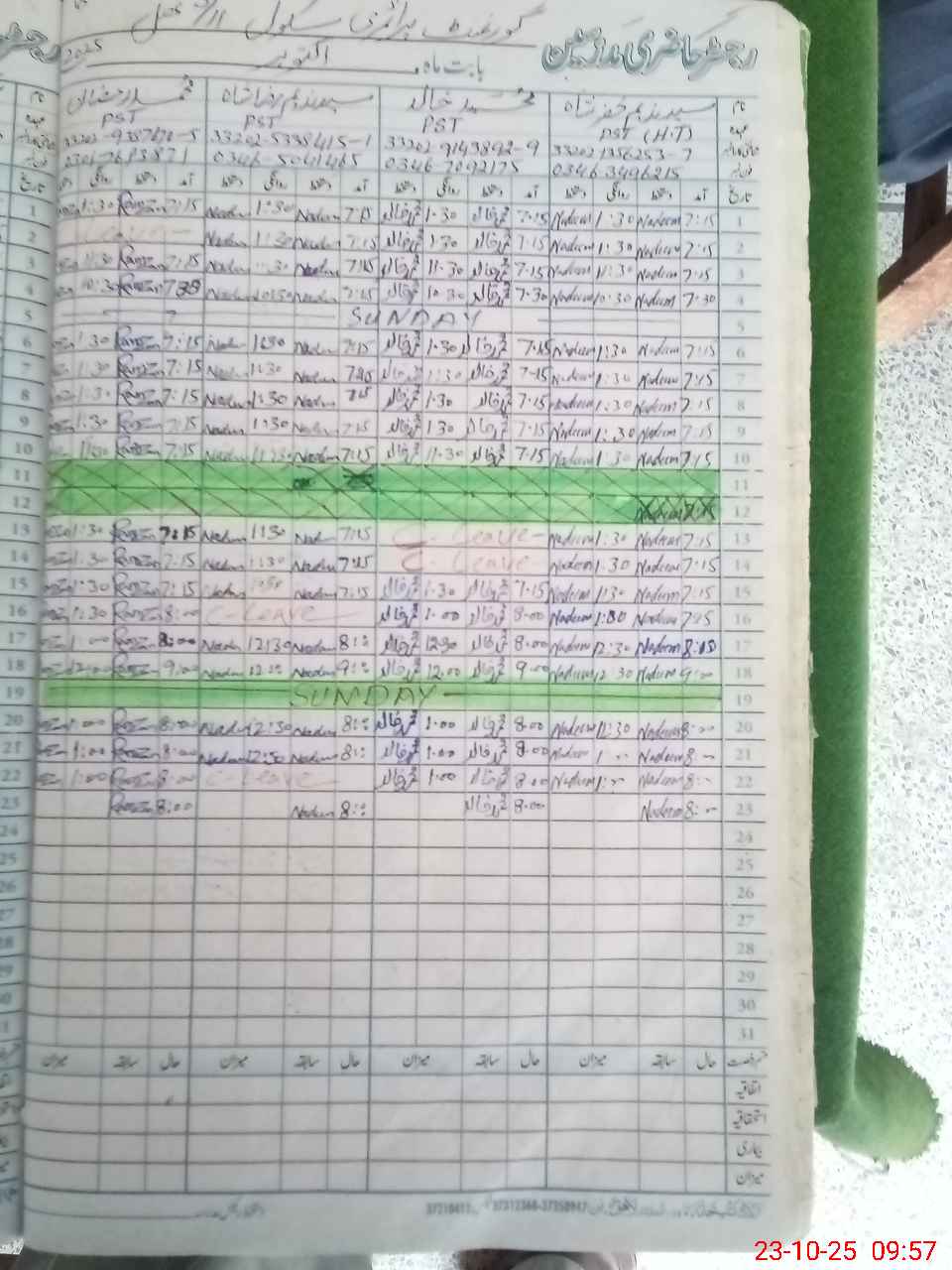 | Name: MU**** TA**** Designation: (School Headmaster's/Headmistress's) PST Phone/Cell Number: 03**** |