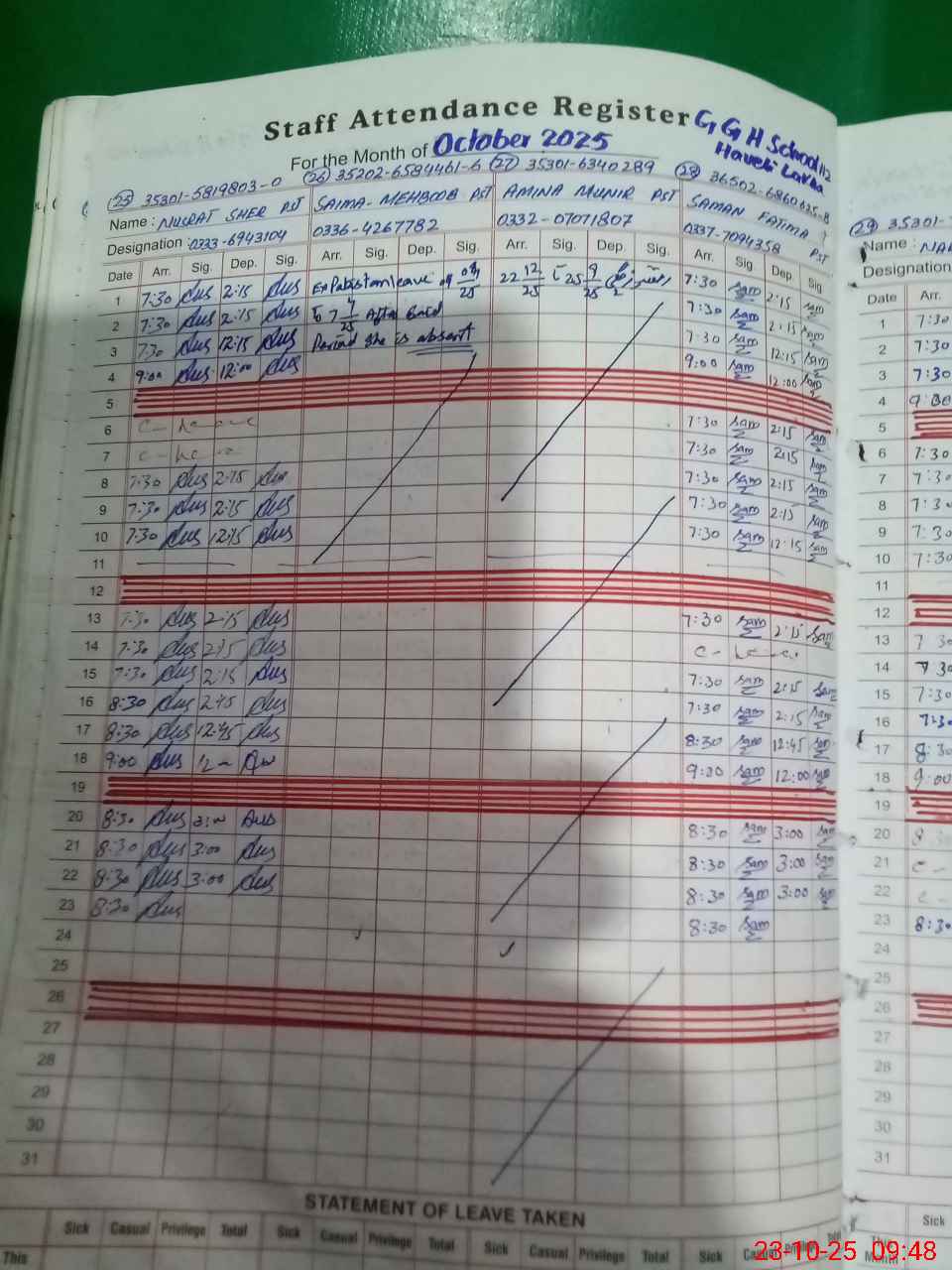 | 35**** | Sa**** Me**** | PST | Regular | 0 | 0 | 0 | 0 | 0 | 0 | 0 | 0 | 0 | Absent (Un-Authorized) |
