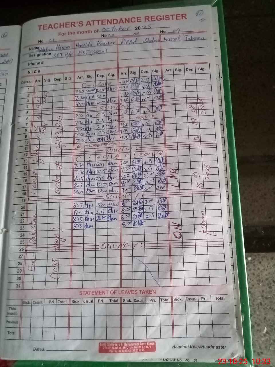 | Name: HA**** KA**** Designation: (School Headmaster's/Headmistress's) EST GEN Phone/Cell Number: 03**** |