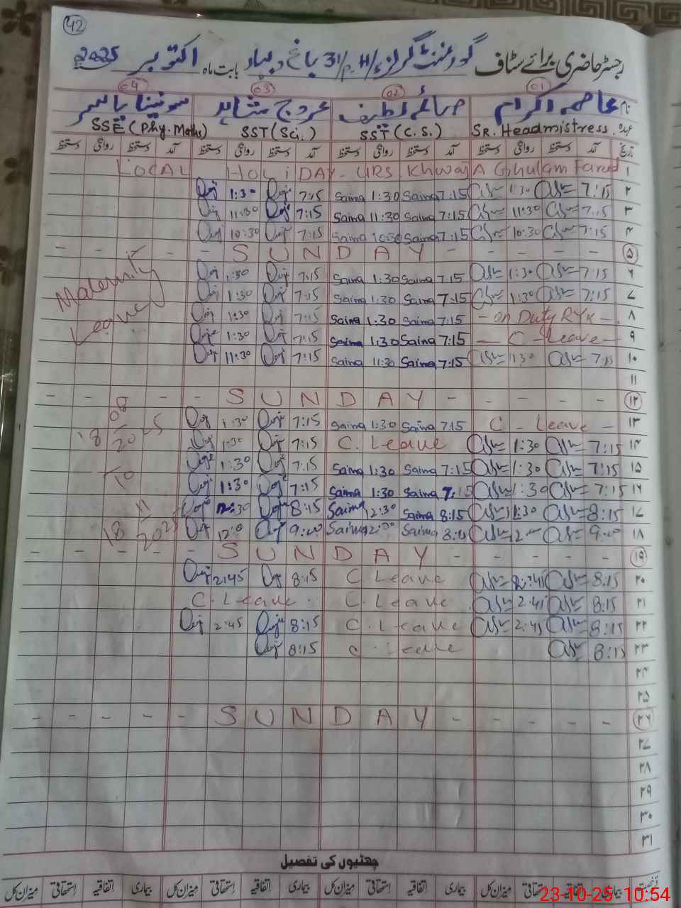 | 33**** | Sa**** La**** | SST | Regular | 0 | 0 | 0 | 0 | 0 | 0 | 0 | 0 | 0 | Casual |