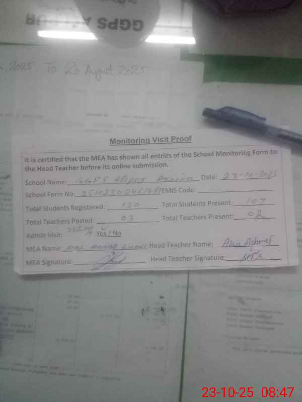 | EMIS Code: 34110618 | Name of School: GGPS ALI PUR ARAIAN | |||