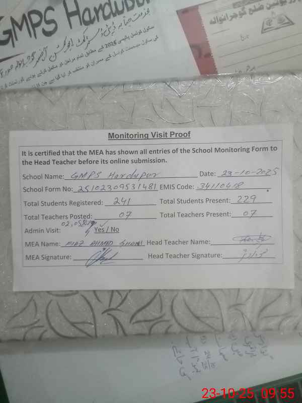 | EMIS Code: 34110418 | Name of School: GMPS HARDU PUR | |||