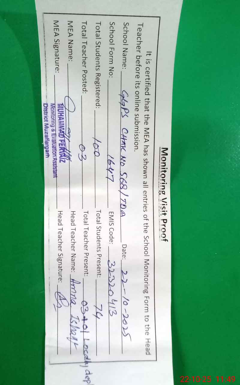 | EMIS Code: 32320413 | Name of School: GGPS CHAK NO. 568/TDA | |||