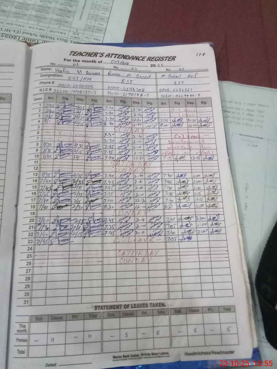 | Name: Ha**** Mu**** An**** Designation: (School Headmaster's/Headmistress's) SST Phone/Cell Number: 03**** |