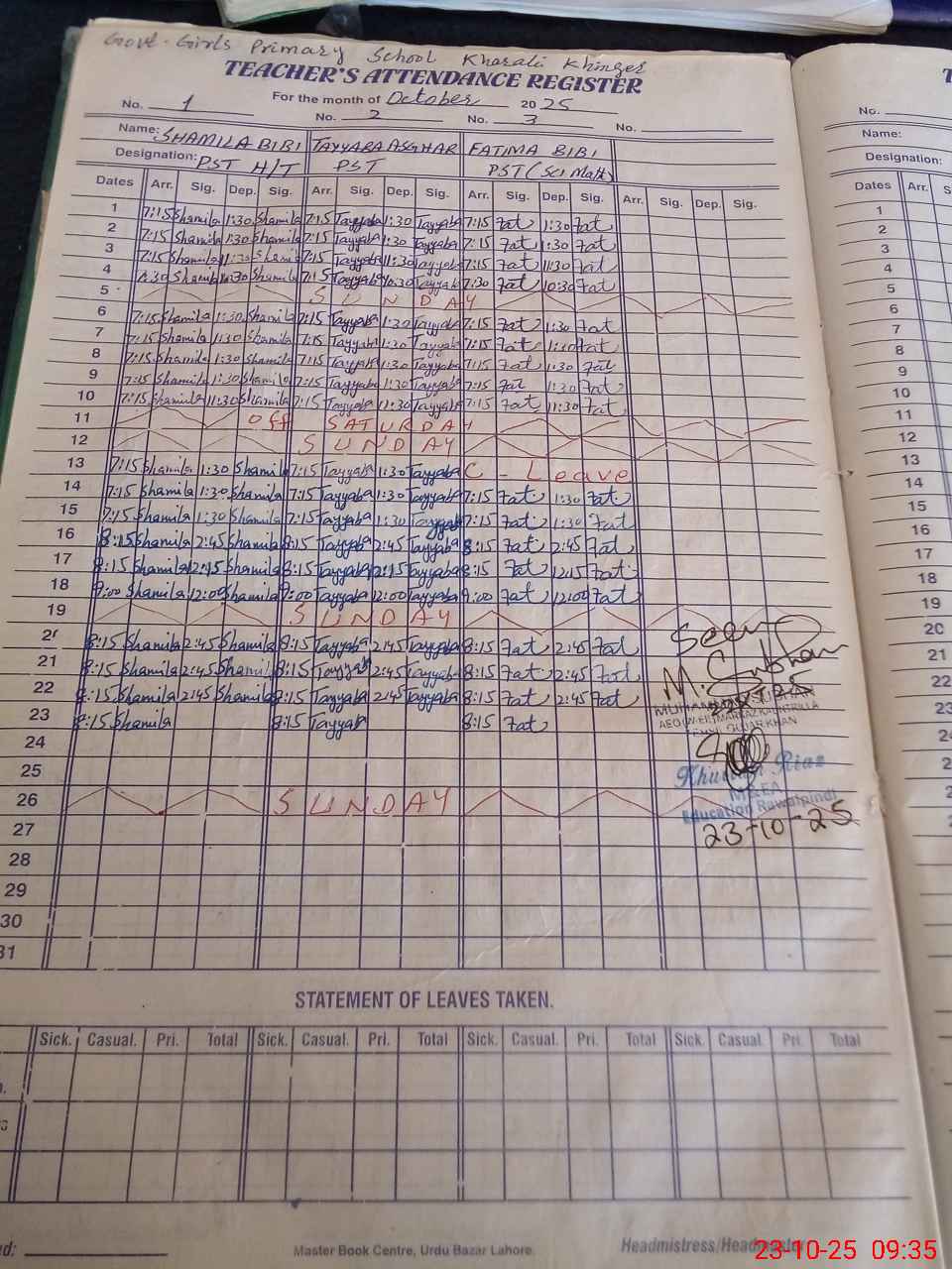 | Attendance Register | Head Teacher | MEA with School | Visit Proof |