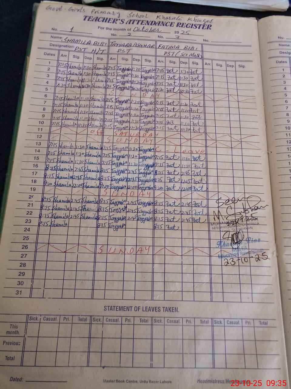 | Name: Sh**** Bi**** Designation: (School Headmaster's/Headmistress's) PST Phone/Cell Number: 03**** |