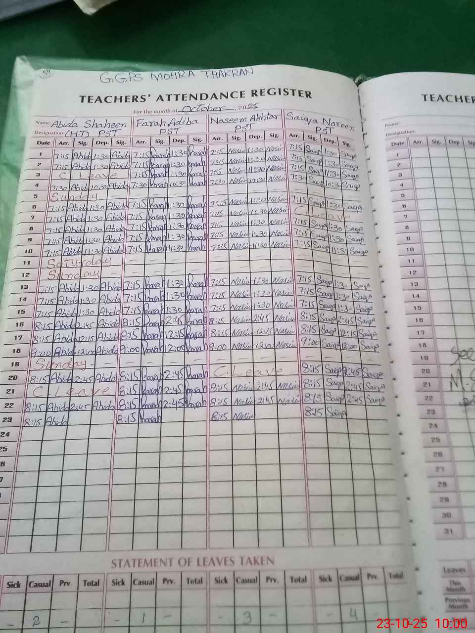 | Name: AB**** SH**** Designation: (School Headmaster's/Headmistress's) PST Phone/Cell Number: 03**** |