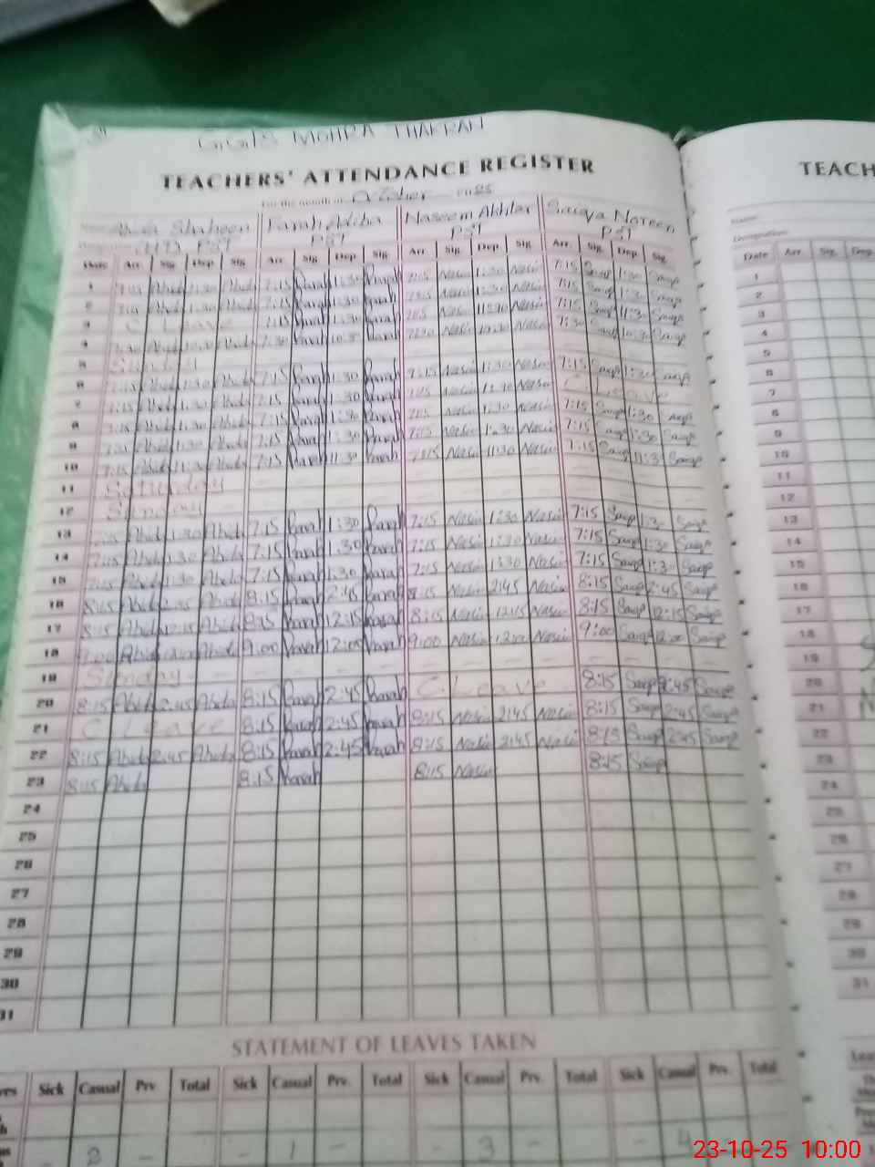| Leave | Duty | Absent | Maternity | Medical | Ex- Pak |