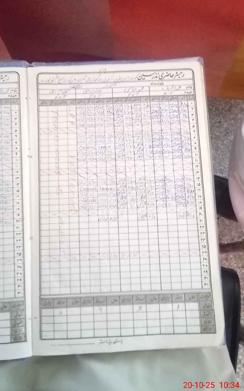 | CNIC | Full Name | Designation | R/C | Absence During Last Calender Month |