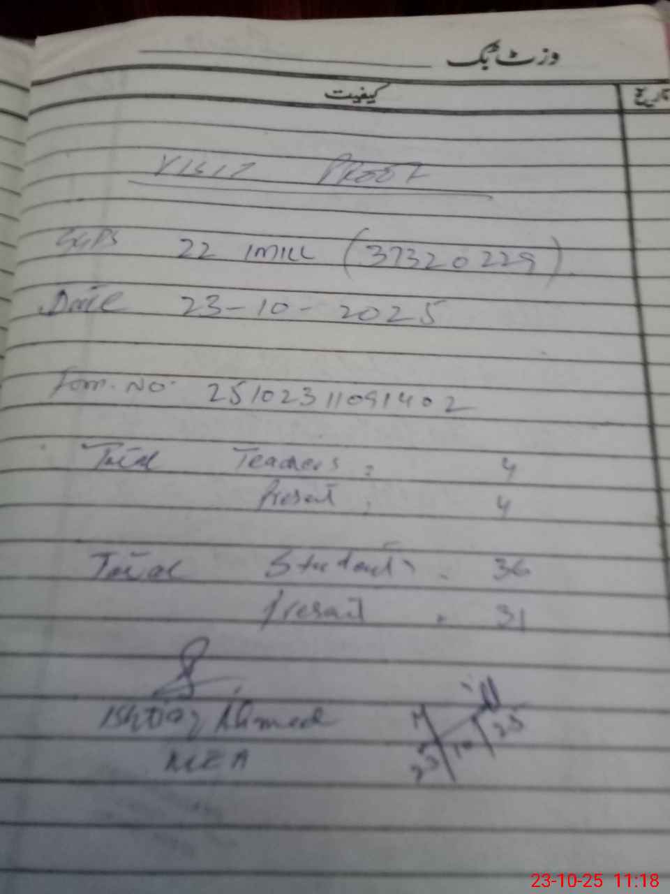 | Attendance Register | Head Teacher | MEA with School | Visit Proof |